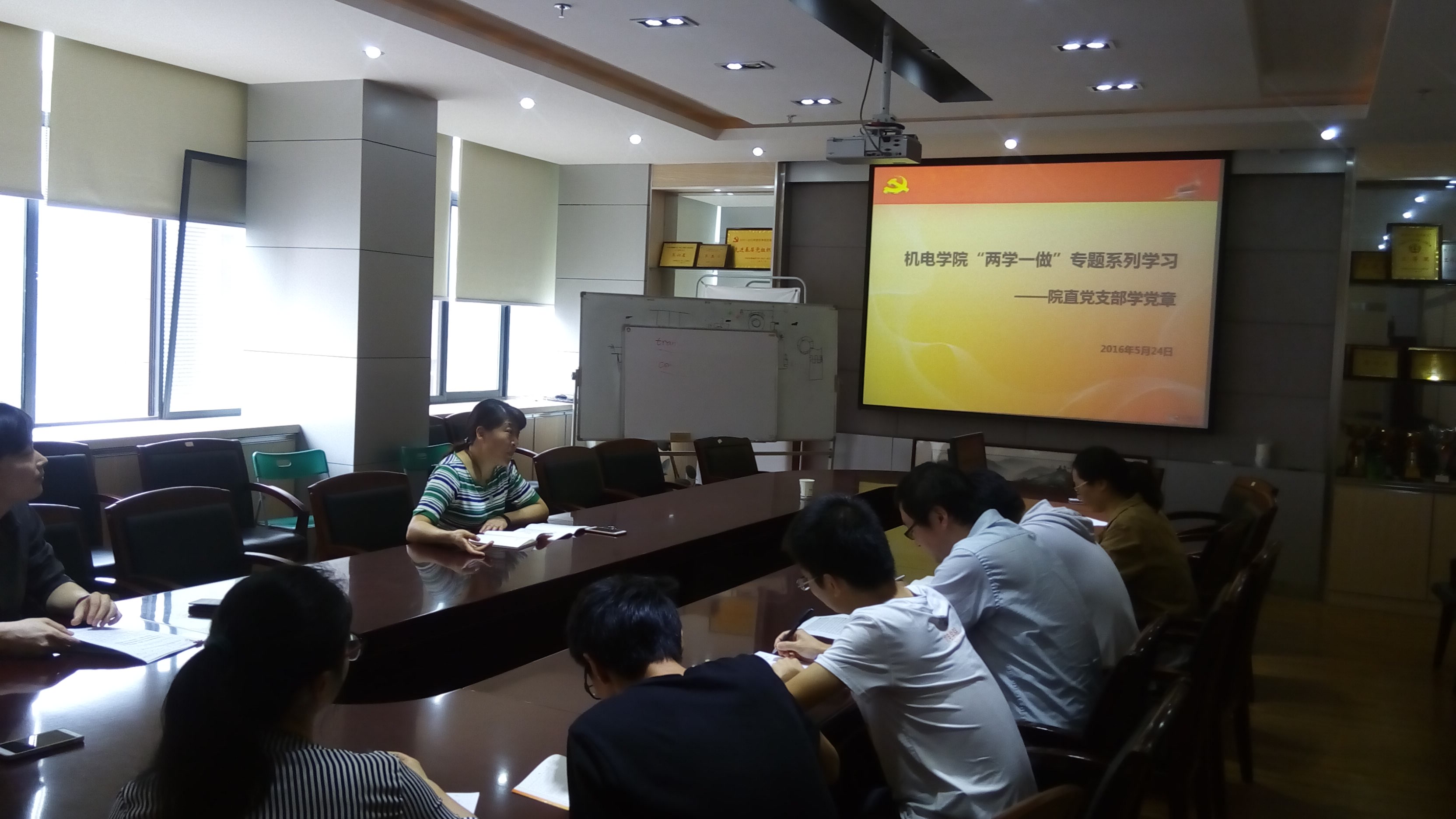 2016年5月24日下午,机电学院院直党支部在教二楼314组织专题《党章》的学习。