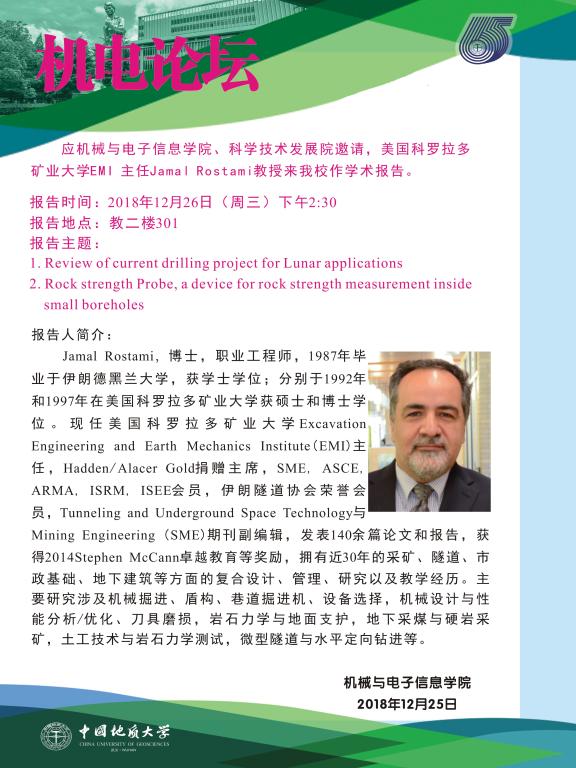 机电论坛:美国科罗拉多矿业大学Jamal Rostami教授来taptap点点官网作报告