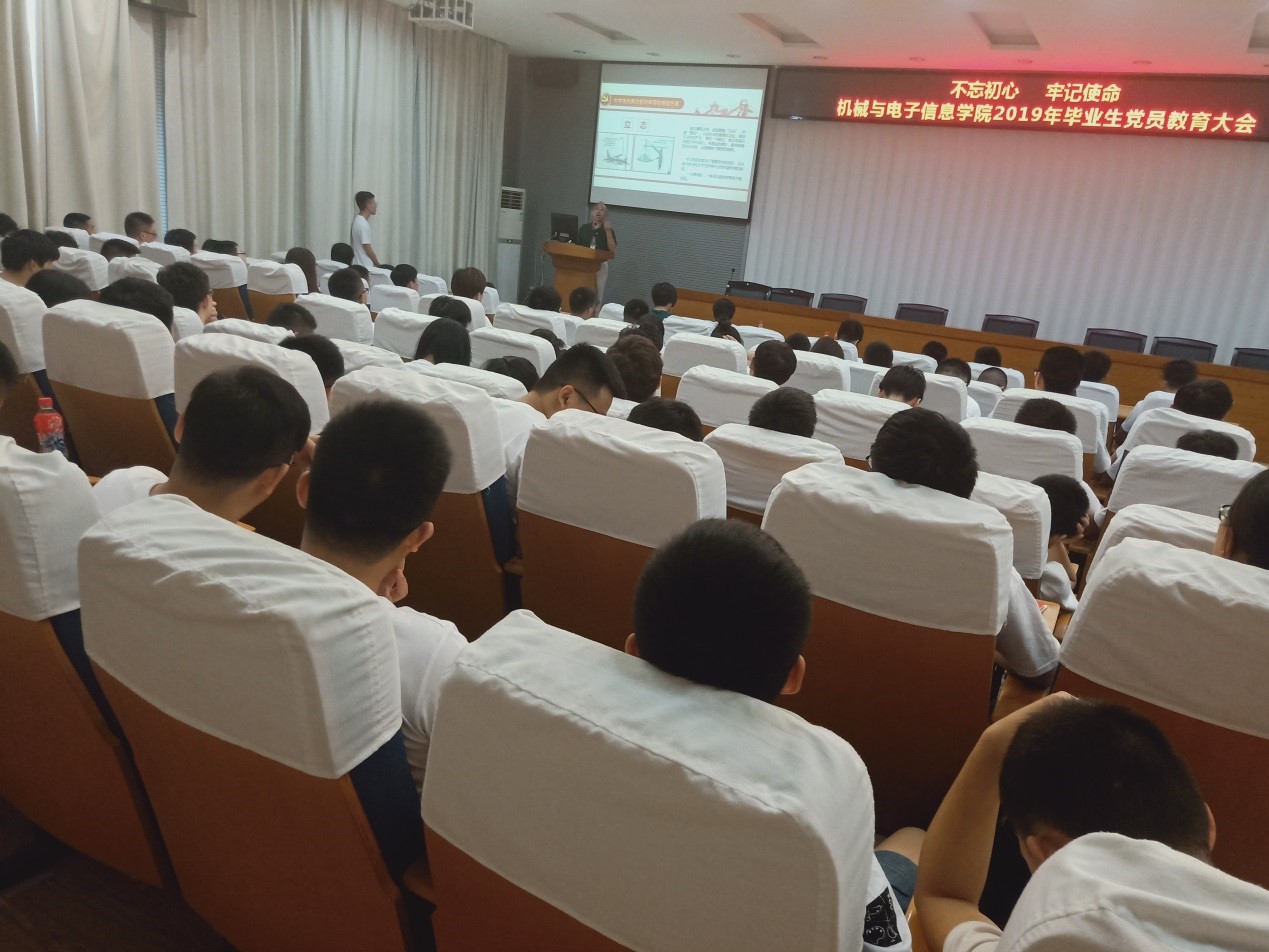 (通讯员 张晓庆)不忘初心,牢记使命。6月24日下午,机电学院2019届毕业生党员教育大会在教二楼301举行。院党委书记瞿祥华、党建辅导员黄梅娇、2019届本科毕业生辅导员杜育及学院全体2019届毕业生党员参加会议,会议由院党委副书记于晓舟主持。