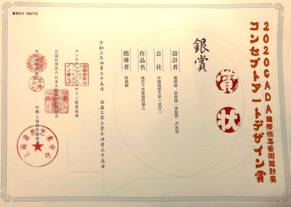 2020年4月20日,由日本大阪视觉艺术协会、日本概念设计研究会主办的2020CADA国际概念艺术设计奖中国赛区第一阶段评审圆满结束。工业设计系2017级学生桑明琪、李依璟、李聪丽、卢永恒同学在陈晓鹂老师的指导下,经过半年的设计创作,凭借作品《城市下水管道机器人》喜获中国赛区银奖,该作品随后会在6月份报送至日本进行最终评选,预定于7月10日公布总赛区评审结果。