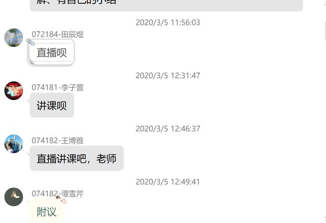 最后,我认为通过同学自行学习MOOC的方式,加上针对重难点问题的直播教学,可以起到比较好的教学效果。一方面,摒弃了满堂灌的形式,保证了不同层次学生学习的进度(有的同学基础扎实,接受新知识快,可以稍微超前于学习计划;而有的同学基础稍薄弱,接受能力慢一点,就需要对某个章节反复聆听和理解),调动了学生的学习自主性;另一方面,又可以针对共性疑难问题进行直播讲解,同时,直播途中,两位老师都可以实时回答同学的问题,以及对直播的讲解过程进行有益的补充,有效保证了教学质量。