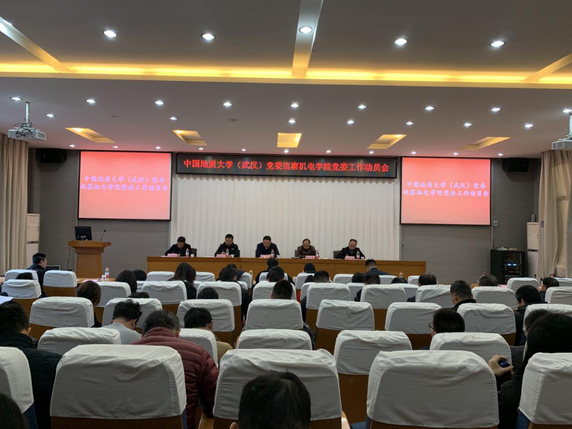 2018年12月12日下午2:30,中国地质大学(武汉)党委巡察taptap点点官方网站党委工作动员会在教二楼301报告厅召开。校党委常委、副校长刘杰,校监察处副处长李杰,校党委第三巡察组成员张吉军、张建华、高莹莹、王向东、陈红霞,学院全体教职工、离退休老同志代表、学生代表等90余人参加会议。院长丁华锋主持会议。