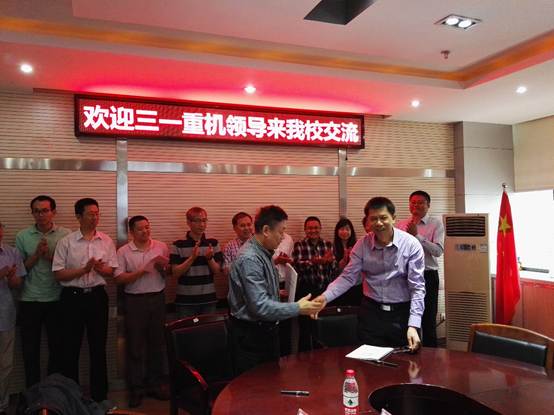 曹东辉介绍了三一重工股份有限公司、三一重机研究本院的基本情况。他十分认同学校的人才培养理念,他表示,学校的多项研究与公司有很高的契合点,是理论与实践的理想结合,他希望双方通过校企合作,不断加强科学研究、人才培养等方面的紧密合作,实现双赢。