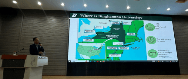 宾汉姆顿大学作为美国知名公立研究型大学,素有“公立常春藤”美誉,其系统工程与智能制造领域研究享誉国际。宣讲会上,汪勇教授详细介绍了该校硕士/博士项目的培养模式、交叉学科特色及工业合作实验室资源,重点解析“科研能力提升-奖学金申请-职业发展支持”全链条培养机制,并通过往届中国学生成功案例,生动展现项目就业竞争力。