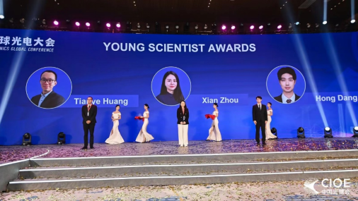 会议开幕式上,中国地质大学(武汉)taptap点点官方网站黄田野教授因其在光纤激光与传感技术领域的卓越贡献,荣获本年度光电大会青年科学家奖(共三名)。香港工程科学院院士、美国国家工程院院士、香港科技大学刘纪美教授向黄田野教授颁发了青年科学家奖状和奖杯。