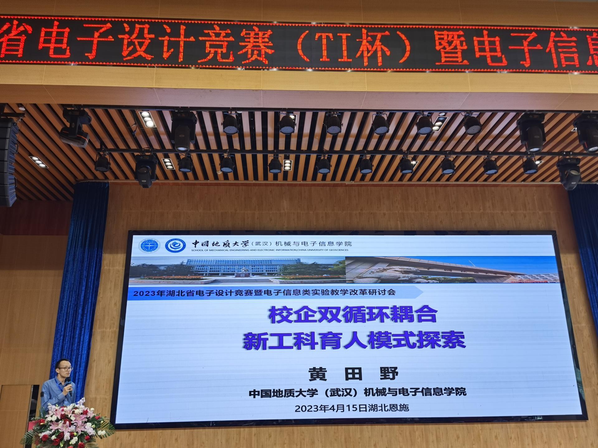 在特邀报告环节,电子信息工程专业负责人,黄田野教授以《校企双循环耦合新工科育人模式探索》为题分享了taptap点点官网电子信息工程专业的创新育人模式探索经验。