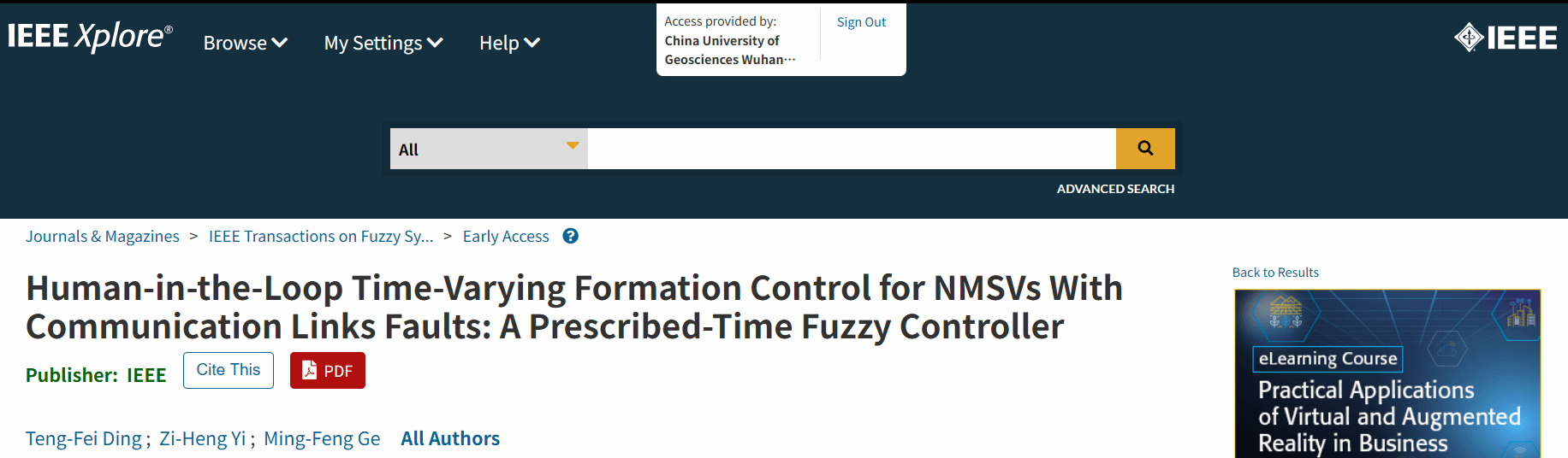 近日,机电学院葛明峰教授团队(丁腾飞、易子恒、葛明峰)在模糊系统领域权威期刊《IEEE Transactions on Fuzzy System》(IF=11.9)发表研究成果。该文提出了一种新型的基于分层控制框架的预定时间模糊控制算法,解决了具有通信链路故障和模型不确定性的多无人船系统的时变编队控制问题。