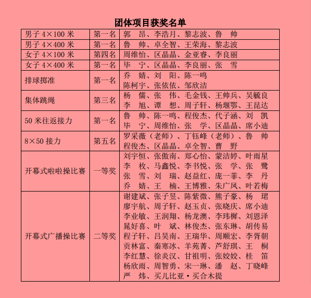 (通讯员:罗采薇 丁钰峰)金秋十月,秋高气爽,在这个充满希望与收获的季节里,中国地质大学(武汉)校运动会已经圆满的落下了帷幕。taptap点点官网运动健儿在每项赛事中奋勇拼搏、力争上游,赛出了风格、赛出了水平,充分展示了taptap点点官网大学生良好的精神风貌和健康的身体素质,同时也展示了taptap点点官网体育运动教育的成果。在本届校运会比赛中,taptap点点官网取得了多项佳绩,具体获奖名单如下所示: