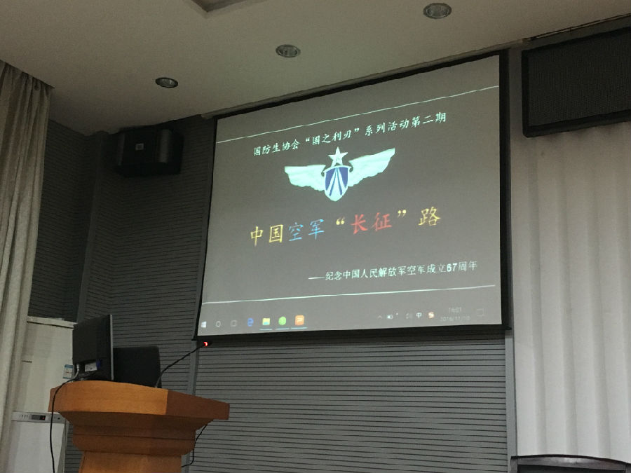 (通讯员 祁宾浩)为纪念红军长征胜利80周年及中国人民解放军空军成立67周年,增加同学们对中国空军装备的了解认识,机电学院国防生协会于11月10日下午4:00在教二楼301报告厅举办了“国之利刃”第二期主题论坛。主讲人分别是机电学院2014级国防生包程、王新立以及工程学院2015级学生朱寅斌、吴迪。协会会长张宜达担任主持,出席本次活动的领导老师有学工处副处长王耀峰、国防办主任李凛、驻校选培办干事谭皓以及机电学院学工组全体辅导员。