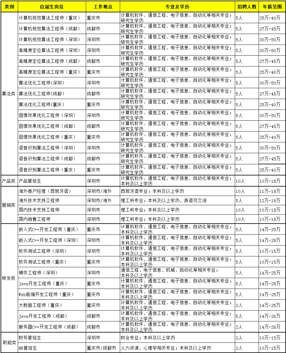 深圳、重庆、成都(国内营销/技术支持工作地点全国、海外销售/技术支持工程师工作地点海外)