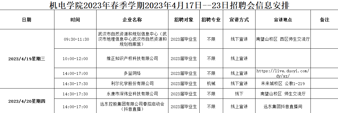 【毕业生·2023年4月17日--23日招聘会信息】